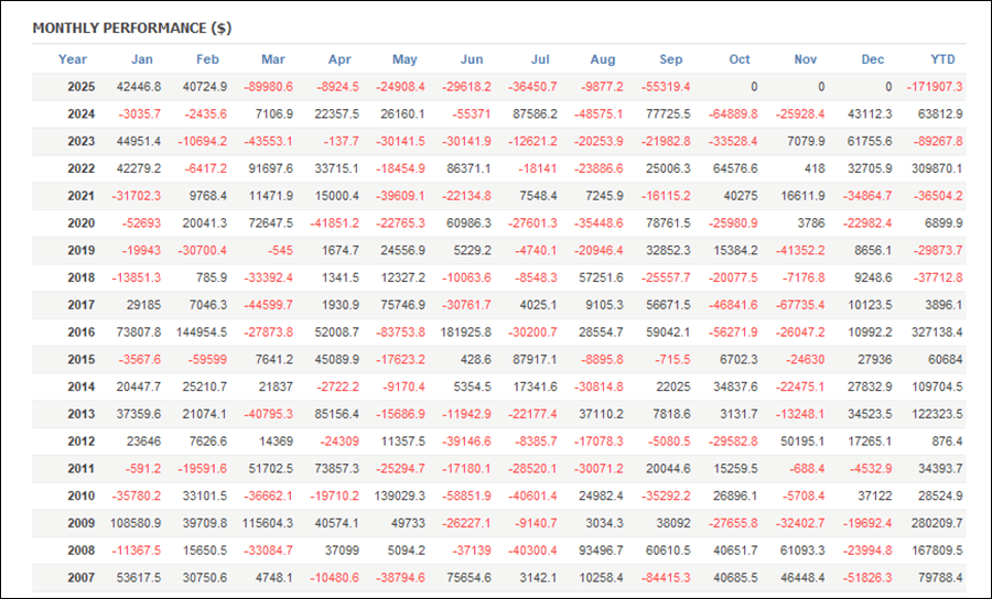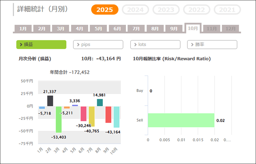 月次分析を見ると、2025年は今のところトータルでマイナスです。