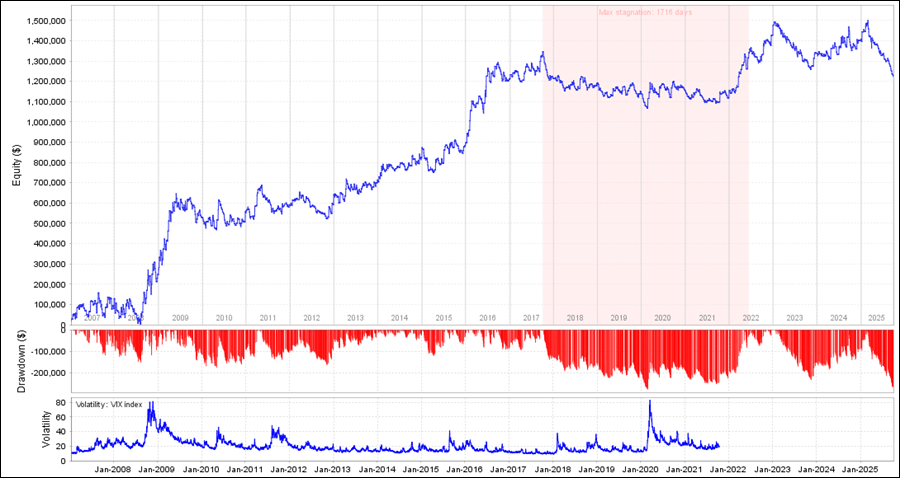 blue(GBPJPY)をQuantAnalyzerで見てみると、後半、2018年~2021年が停滞しています。