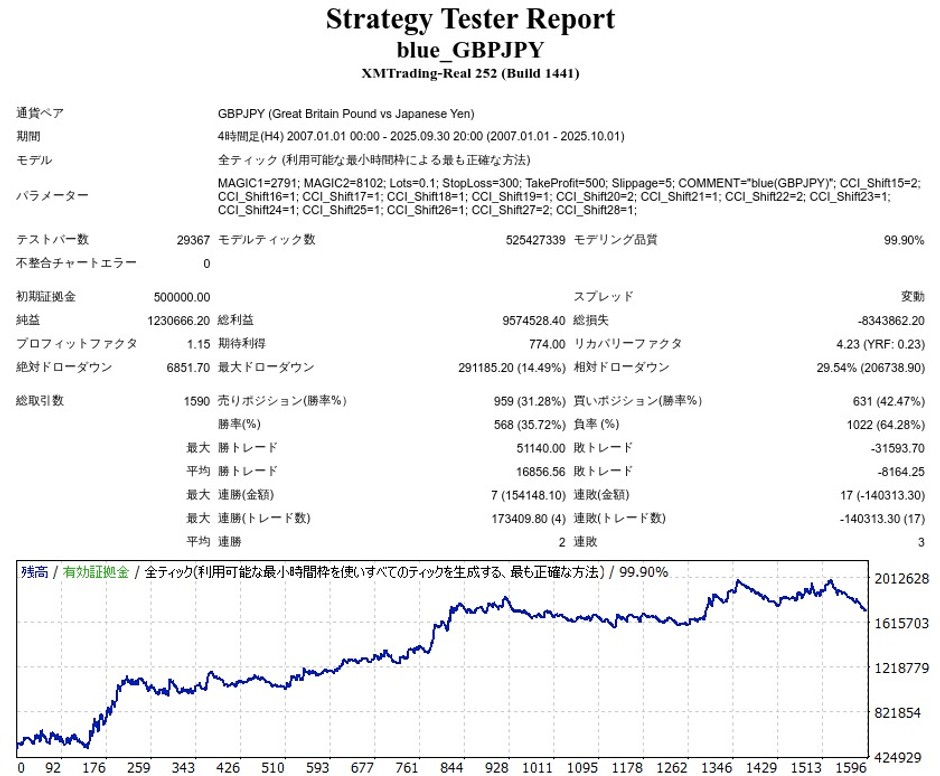 blue(GBPJPY)のリリース後のバックテスト結果(≒フォワード結果)は以下のようになりました。