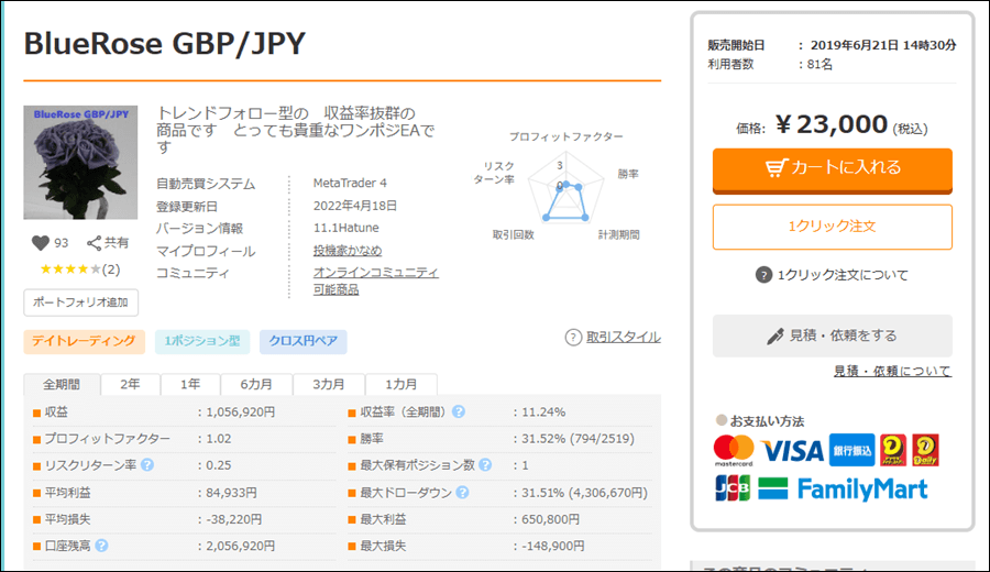 BlueRose GBP/JPYはデイトレードEAのようですが、成績はどうなのでしょうか。