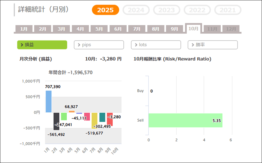 月次分析を見ると、2025年になってマイナスが多くなっています。