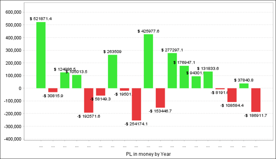 QuantAnalyzerを使った年次・月次の成績となります。まあまあ負ける年もあります。