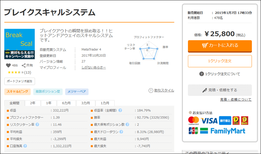 ブレイクスキャルシステムは公開成績を見ると、リリースしてから8年ほどになり、USDJPYだけの成績のようですが最近は成績が伸びています。