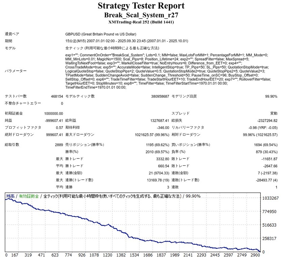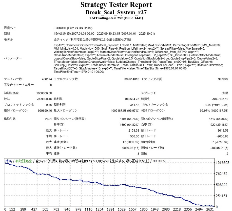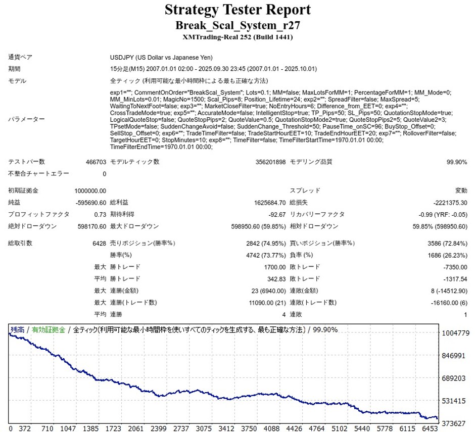 ブレイクスキャルシステムのバックテストをしましたが、全体的にマイナス結果となりました。