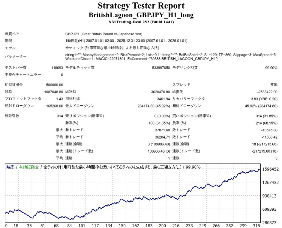 British LagoonはGBPJPY専用のEAですが、成績はどうなのでしょうか。