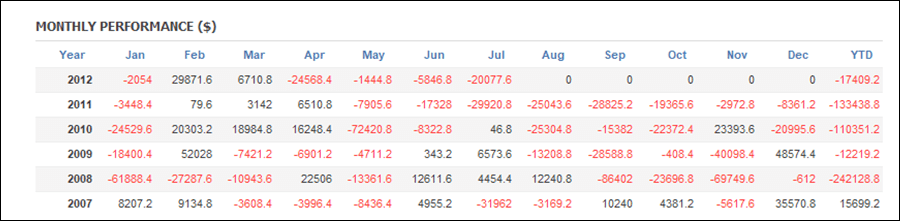 | 最大ドローダウン | 529,532円(99.97%) | リスクリターン率 | -0.94 |