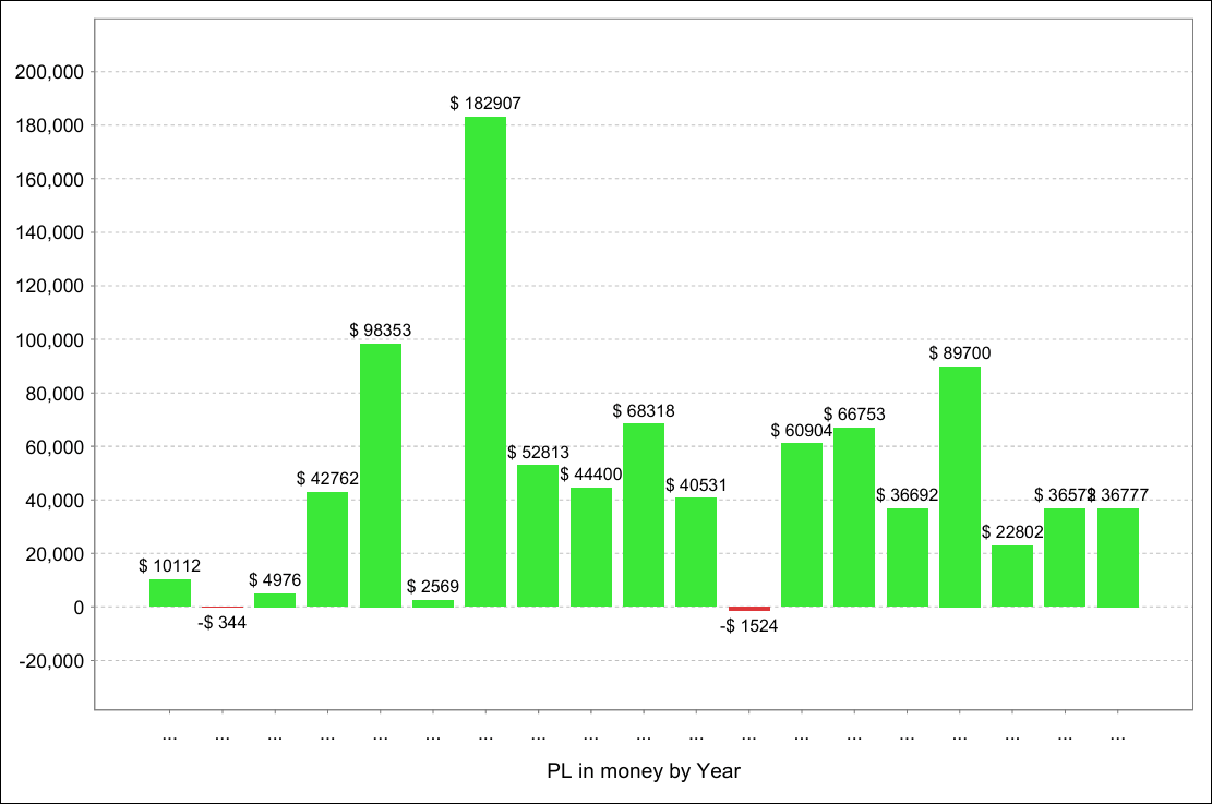 年次の成績を見ると、2008年、2018年がわずかにマイナスで、それ以外はプラスです。