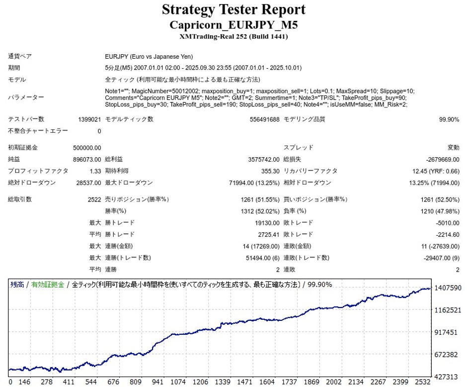 Capricorn EURJPYのバックテストをしてきました。