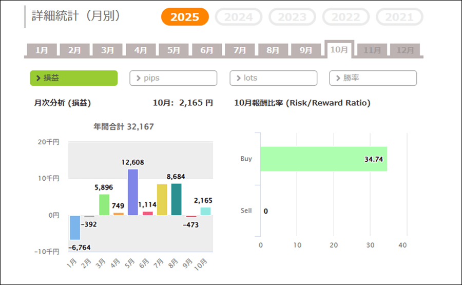 月次分析を見ると、負ける時は大きく負けていて、コツコツドカンの傾向があります。