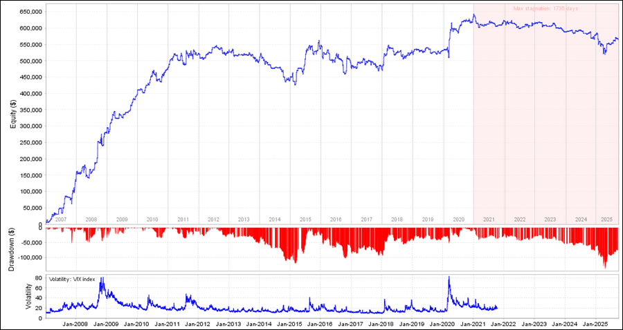 ChallengeScalMorning V EURCADをQuantAnalyzerで見てみると、後半からは成績が停滞しています。