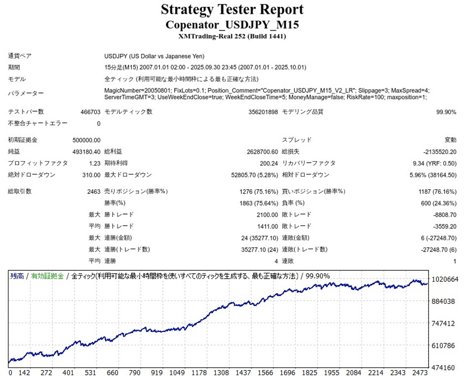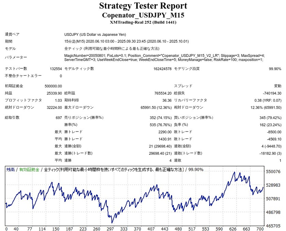 - DoubleE_Logic_COT_USDJPY_M15_V1のEA検証結果