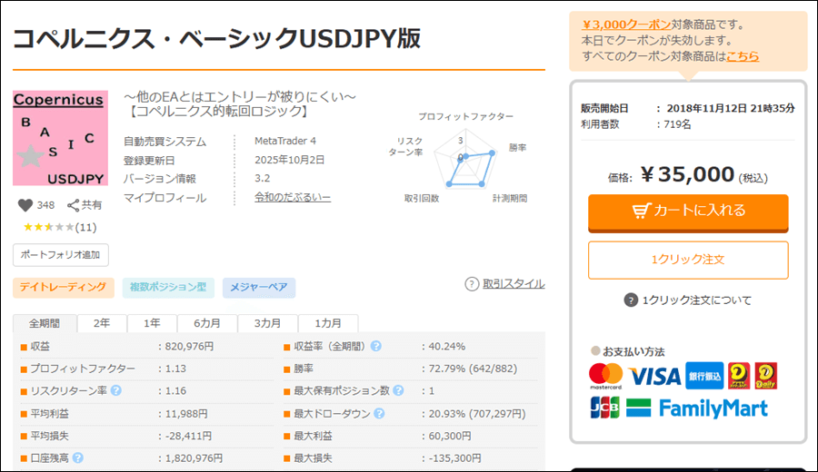 コペルニクス・ベーシックUSDJPYの特徴は以下の3つになります。