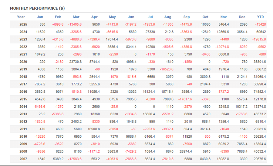 2021年からはマイナス成績が続いています。2024年はプラス、2025年はマイナスです。