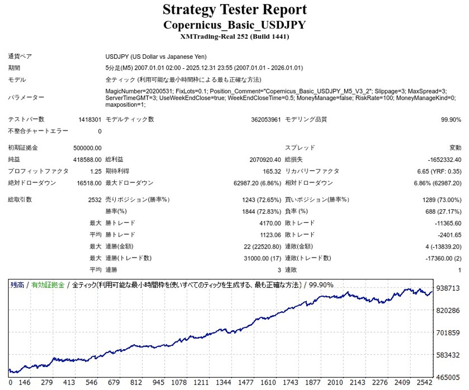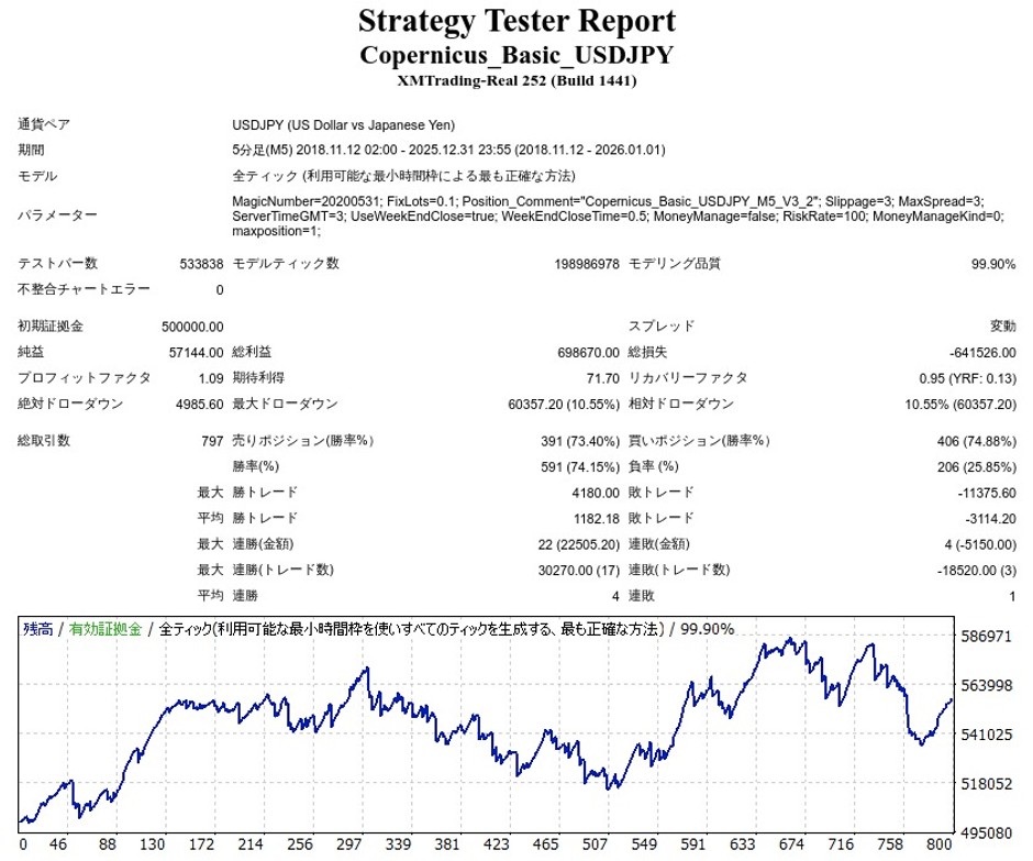 コペルニクス・ベーシックUSDJPYのリリース後のバックテスト結果(≒フォワード結果)は以下のようになりました。
