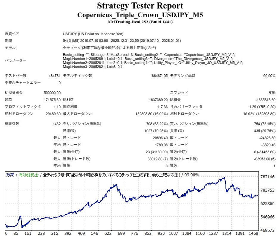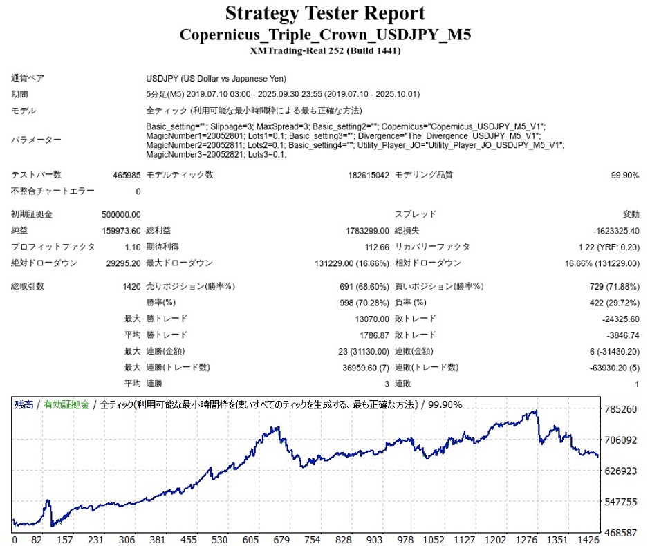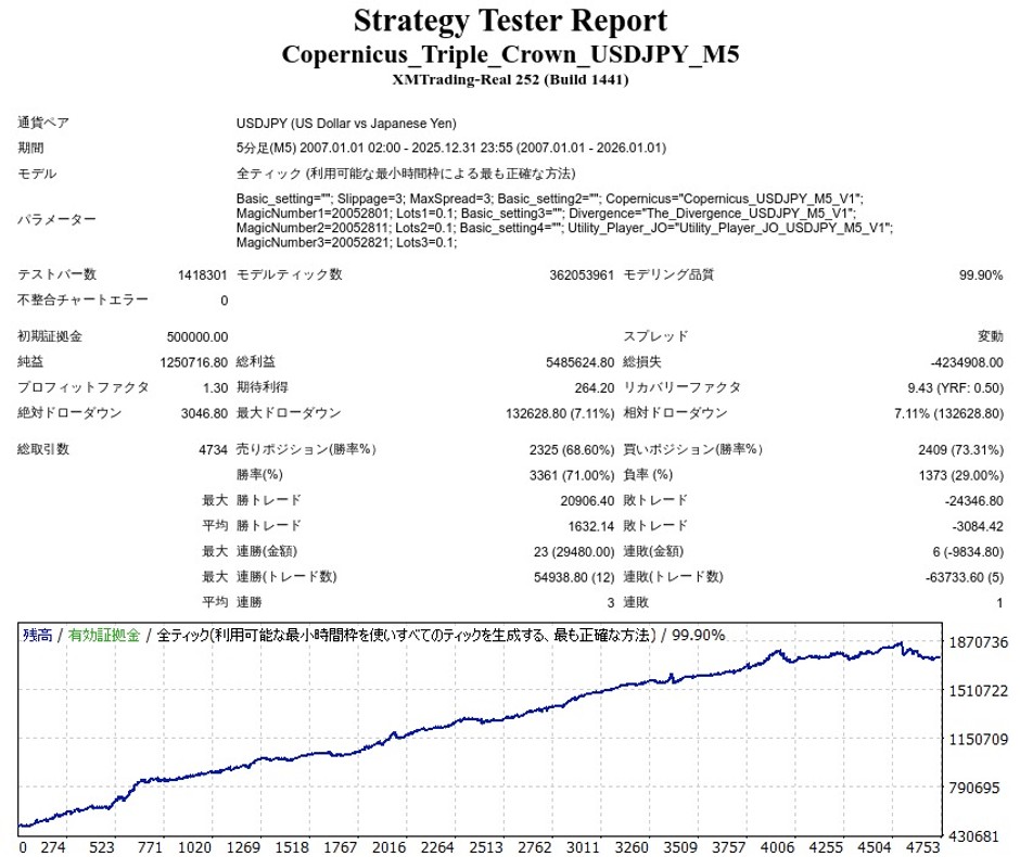 コペルニクス・トリプルクラウンをQuantAnalyzerで見てみると、全体的には右肩上がりです。