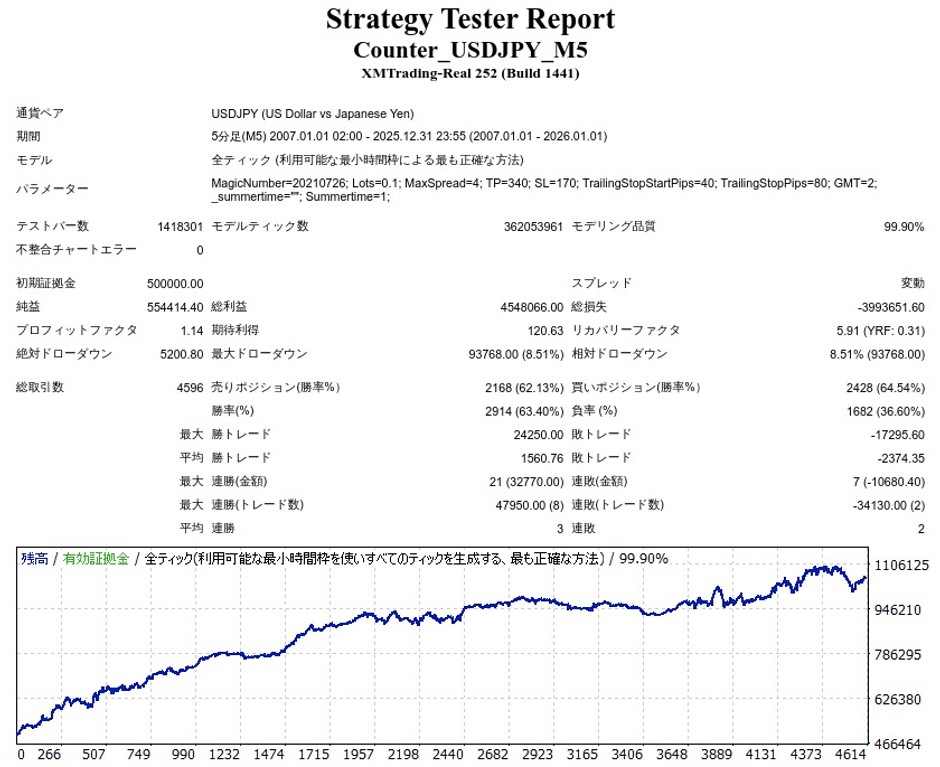 Counter_USDJPY_M5は過去18年で55.4万円の利益を出しました。