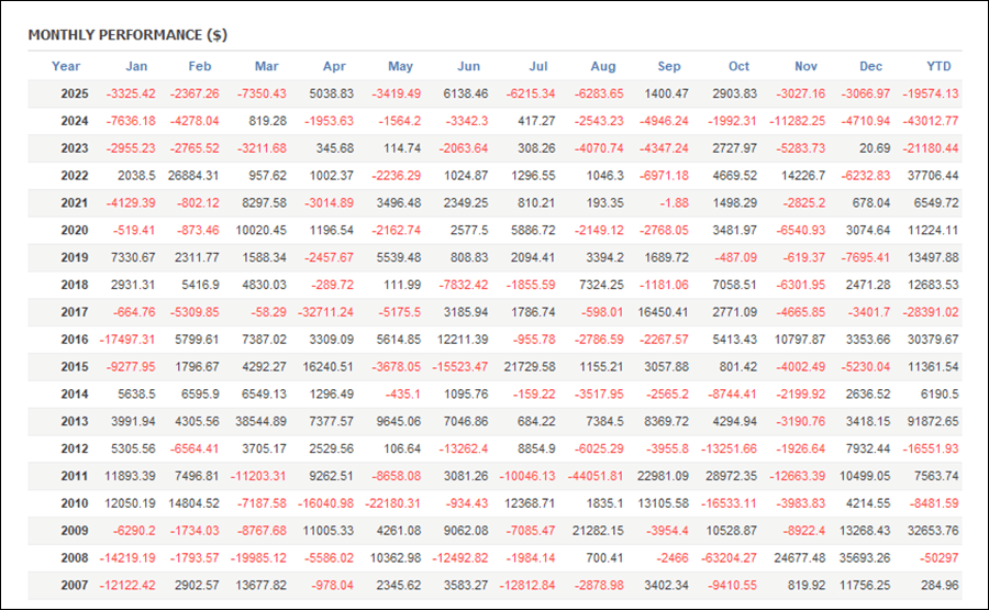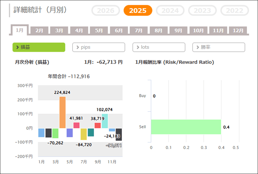 月次分析を見ると、2025年はトータルでマイナスです。