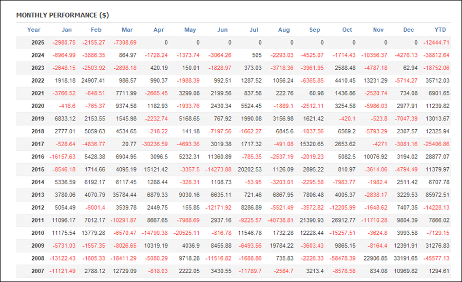 月次分析を見ると、2025年は今のところトータルでマイナスです。