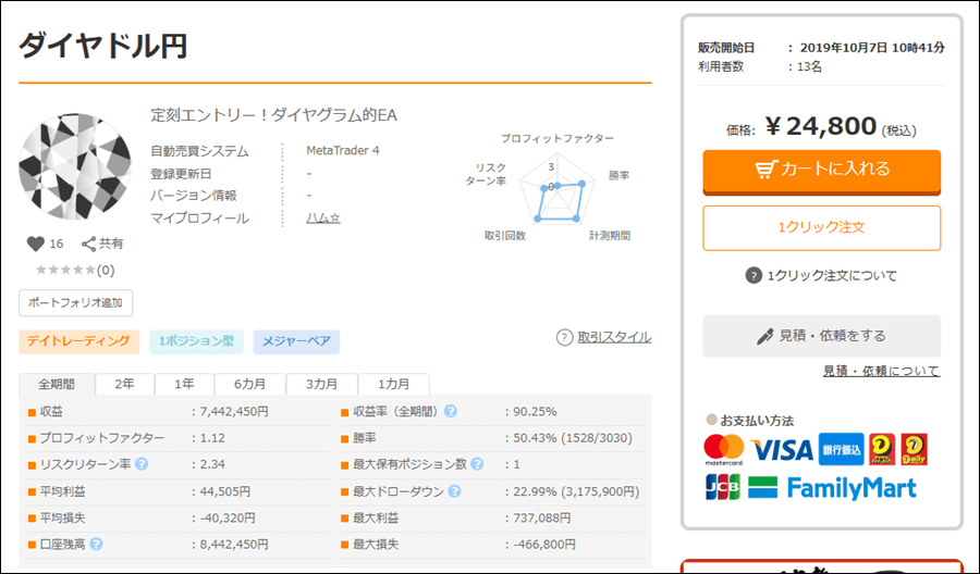 ダイヤドル円は定刻エントリーをするアノマリー系のEAですが、成績はどうなのでしょうか。