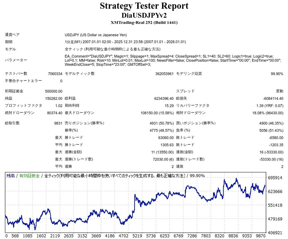 ダイヤドル円のEA検証結果