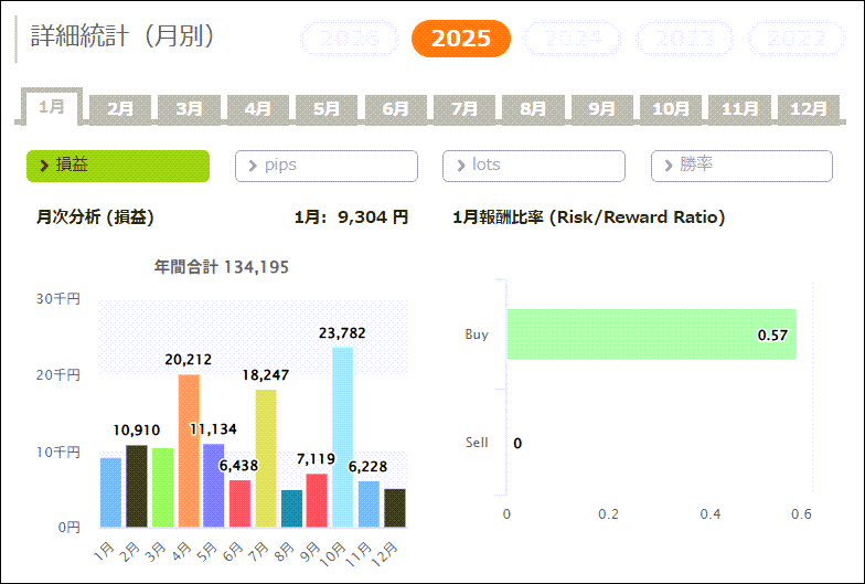 2022年~2025年の月間成績をまとめると合計で+24.8万円の成績となりました。