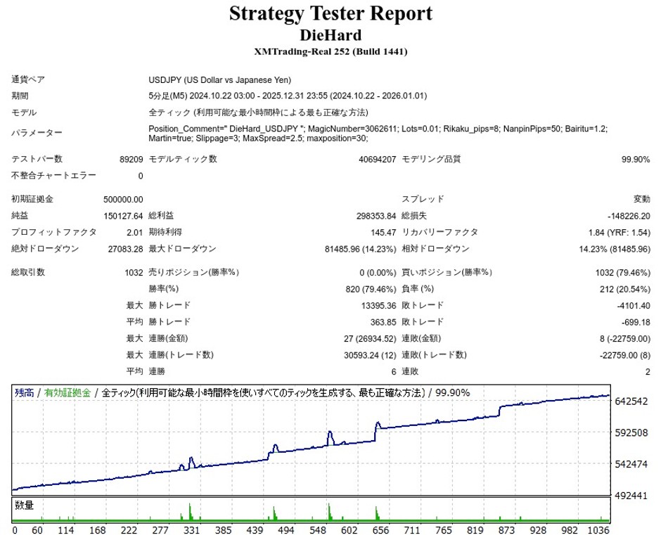 DieHard_USDJPYのEA検証結果