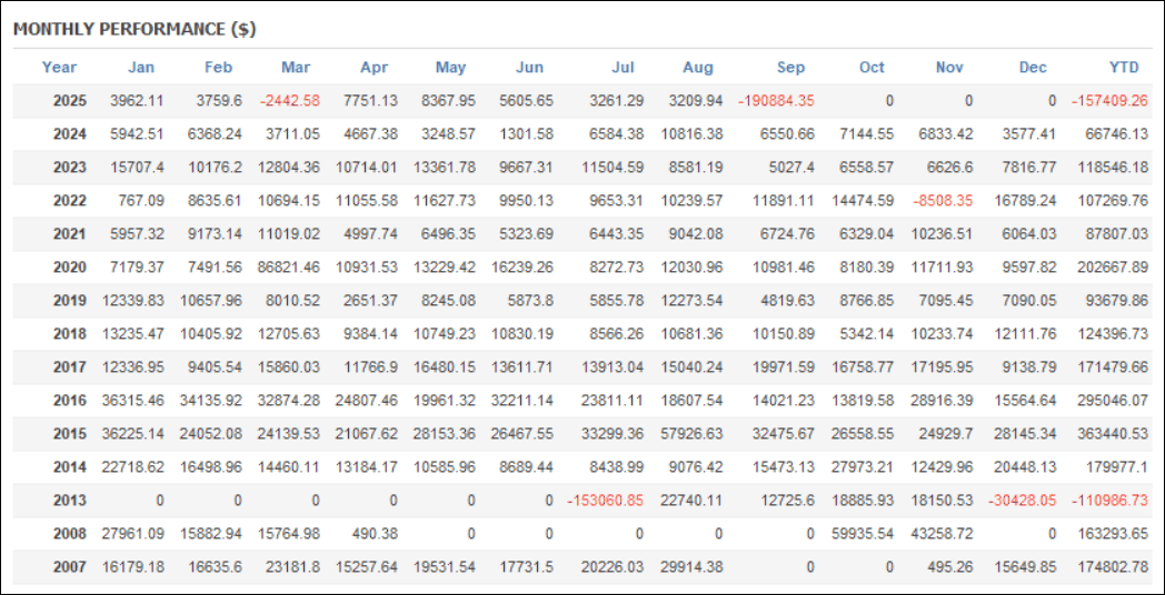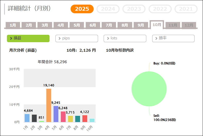 月次分析を見ると、リピート系のため全てプラス成績です。
