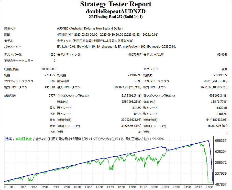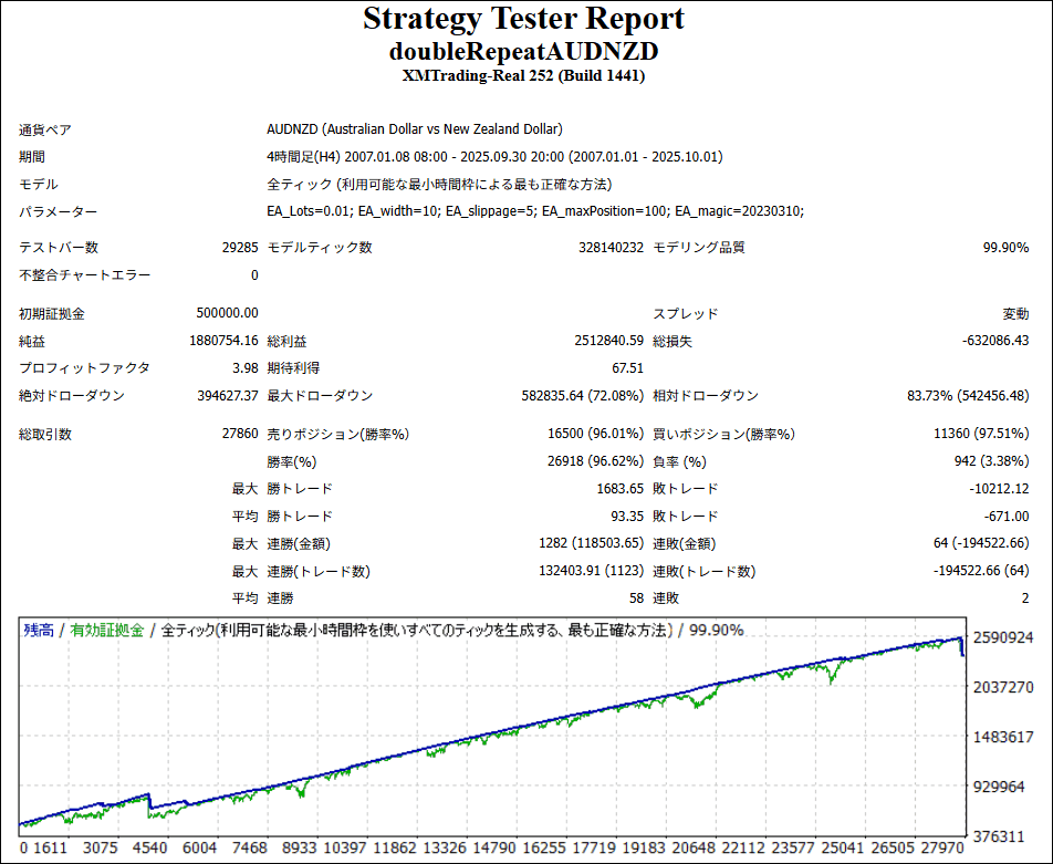 ダブリピトレードAUDNZDはリピートEAですが、成績はどうなのでしょうか。
