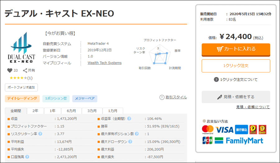デュアル・キャスト EX-NEOはUSDJPY専用のEAですが、成績はどうなのでしょうか。