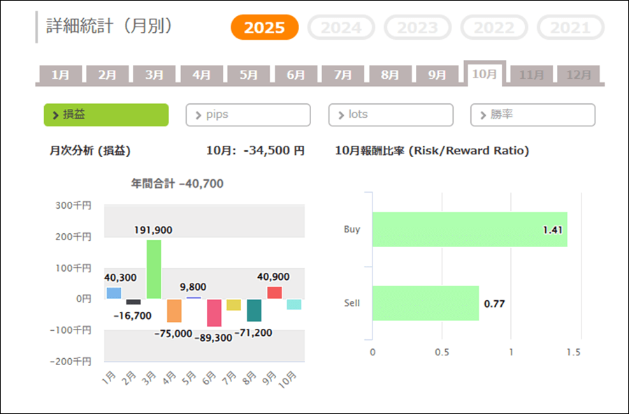 | 平均損失 | -1,141円 | 最大損失 | -8,650円 |