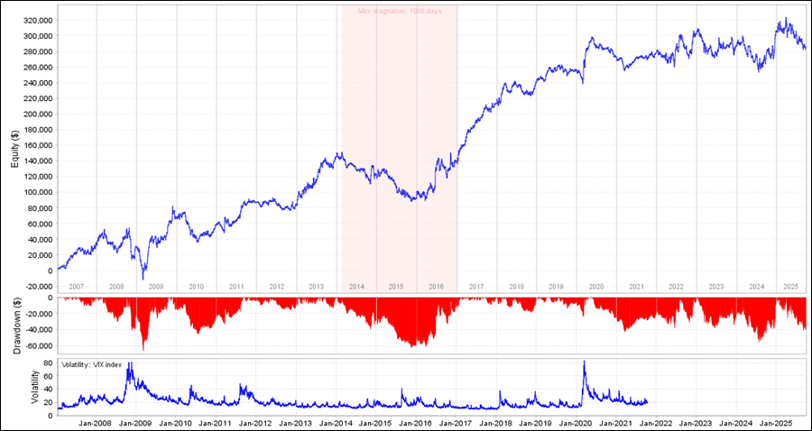 デュアル・キャスト EX-NEOをQuantAnalyzerで見てみると、途中2014年~2016年が停滞していますが、全体で見るとトータルでプラスです。