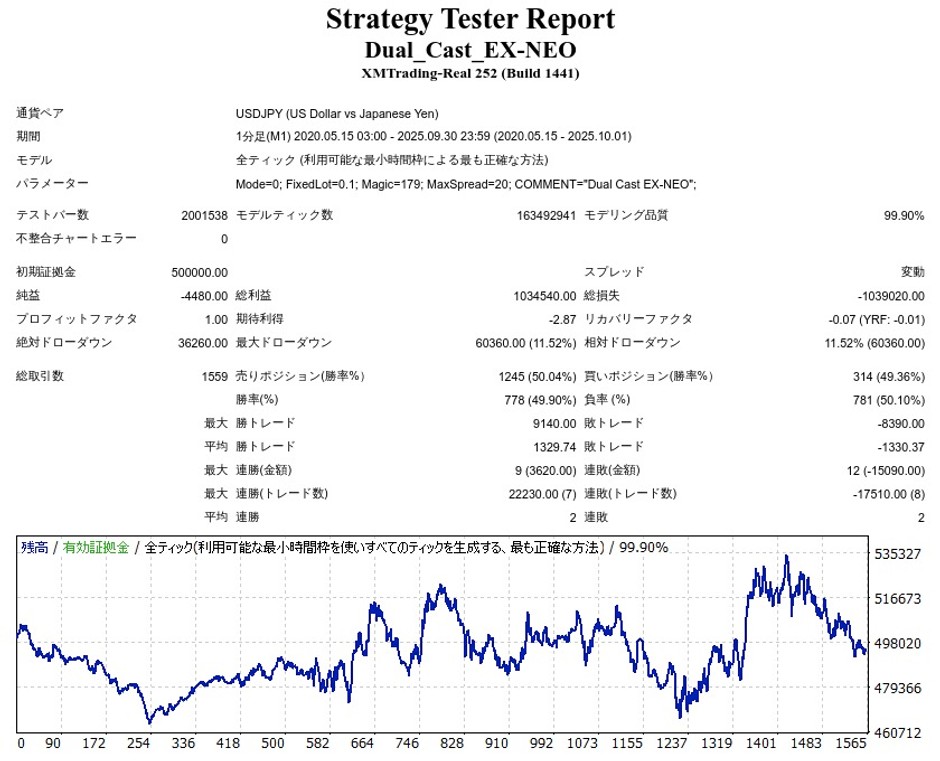 | 初期証拠金 | 500,000円 | 勝率 | 49.90% |
