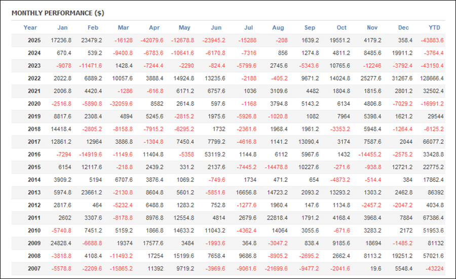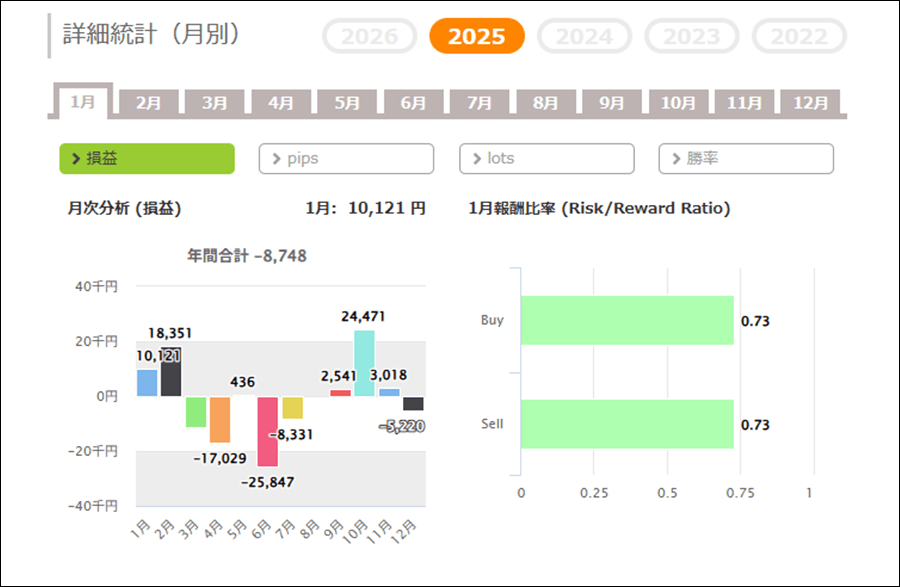 月次分析を見ると、2025年はトータルでマイナスです。