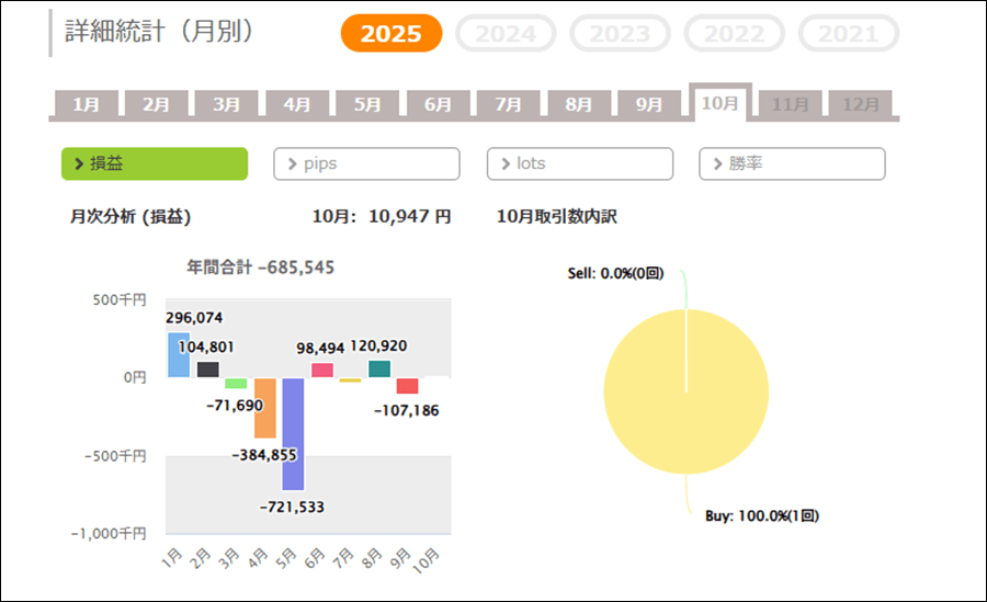 月次分析を見ると、負ける時のマイナスが大きいです。