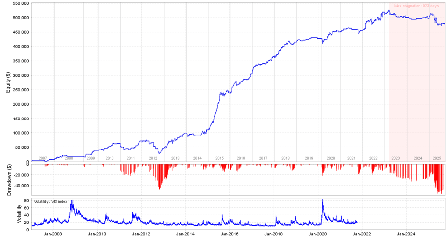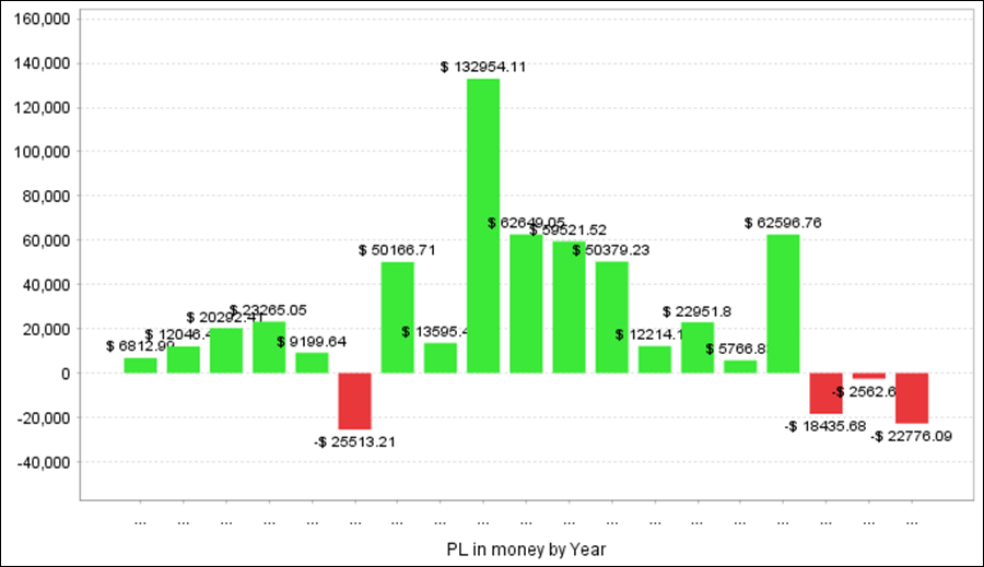 ダイナミックプロフィットは過去18年で+47.5万円の利益でした。最大ドローダウンは低いです。