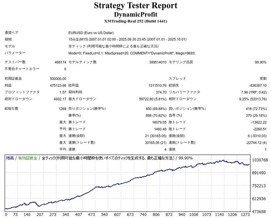 | 初期証拠金 | 500,000円 | 勝率 | 70.82% |