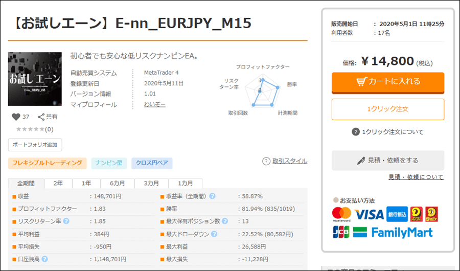 【お試しエーン】E-nn_EURJPY_M15は低リスクナンピンEAですが、成績はどうなのでしょうか。