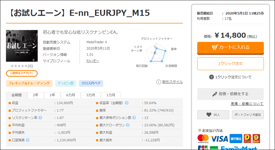 【お試しエーン】E-nn_EURJPY_M15は低リスクナンピンEAですが、成績はどうなのでしょうか。