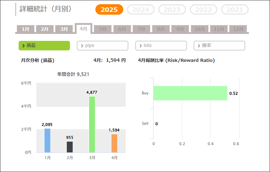 毎月1日~末日までの成績をまとめるとこのような成績となります。