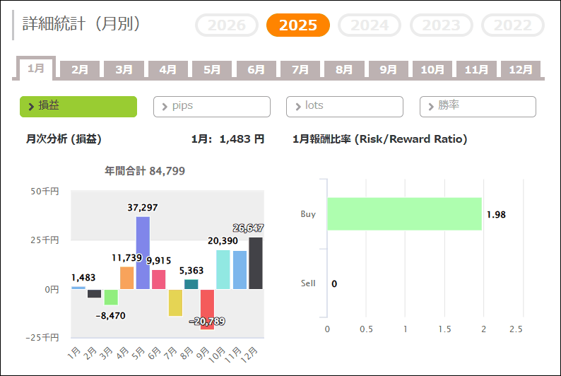 月次分析を見ると、2025年はトータルでプラスです。2024年、2023年もトータルでプラスになっています。