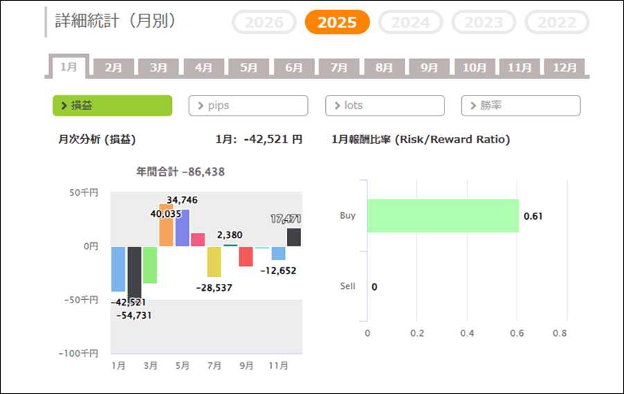 | 平均損失 | -6,234円 | 最大損失 | -12,732円 |