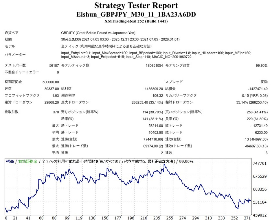 GogoJungleの英俊(Eishun)_GBPJPY_M30のバックテストをしてきましたが、良い成績となりました。