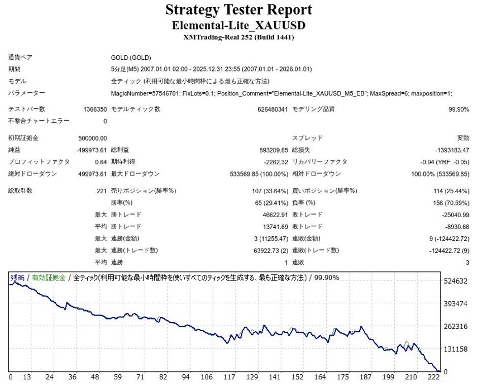 Elemental-Lite_XAUUSD_M5_EBは過去18年はロスカット、リリース後はプラスでした。