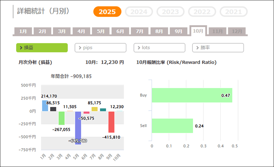 月次分析を見ると、プラスの月が多いですが、負ける時のマイナスが大きいです。