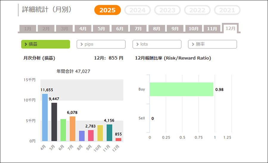 2022年~2025年の月間成績をまとめると合計で+21.8万円の結果となりました。