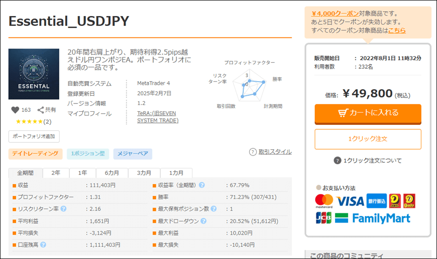Essential_USDJPYはドル円のワンポジEAですが、成績はどうなのでしょうか。