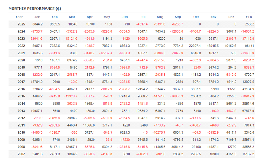 月次分析を見ると、2025年は今のところトータルでプラスです。