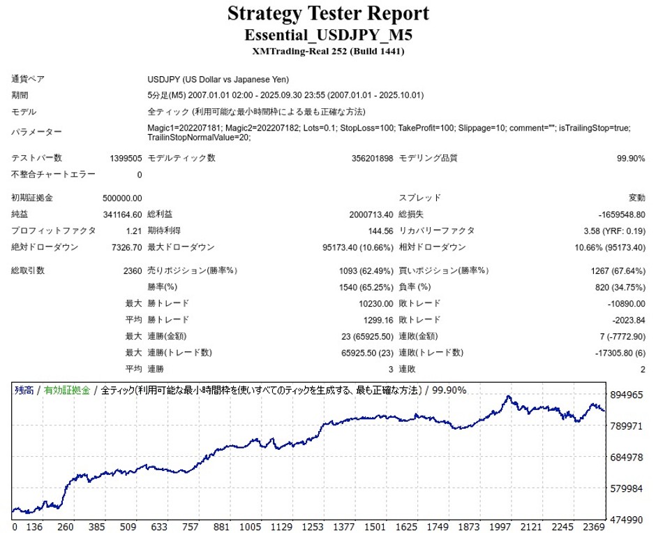 Essential_USDJPYのリリース後のバックテスト結果(≒フォワード結果)は以下のようになりました。