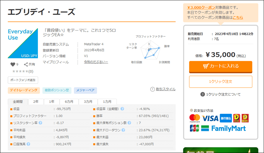 エブリデイ・ユーズはUSDJPY専用のスキャルピングEAのようですが、成績はどうなのでしょうか。