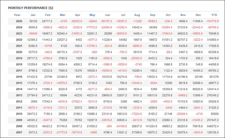 年次では2024年、2025年以外は全てプラス成績でした。